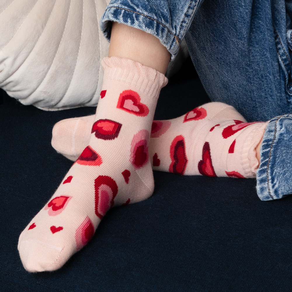Dodaj odrobinę uroku do garderoby swojej dziewczynki dzięki naszym wyjątkowym skarpetkom w serduszka, ozdobionym delikatną falbanką. Wykonane z miękkiej i przewiewnej bawełny, zapewniają komfort noszenia przez cały dzień. Subtelny design sprawia, że są idealnym wyborem zarówno na co dzień, jak i na bardziej eleganckie okazje. To połączenie funkcjonalności i stylu. Dzięki ozdobnej falbance wyglądają uroczo w połączeniu z sukienkami, spódniczkami czy krótkimi spodenkami.