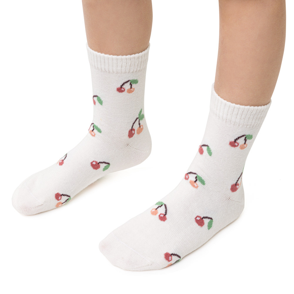 Dodaj radości do każdego kroku dzięki dziewczęcym skarpetkom z uroczym wzorem wisienek! To doskonały wybór dla małych miłośniczek kolorowych i wyjątkowych dodatków, które łączą styl z wygodą. Te skarpetki to świetny dodatek do codziennych stylizacji, który przypadnie do gustu każdej dziewczynce. Skarpetki są delikatne dla skóry i pozwalają stopom oddychać, dzięki 74% bawełny. 23% poliamidu i 2% elastanu sprawia, że skarpetki są trwałe i doskonale dopasowują się do stopy, zapewniając komfort przez cały dzień. 1% polipropylenu daje dodatkową odporność na zużycie.