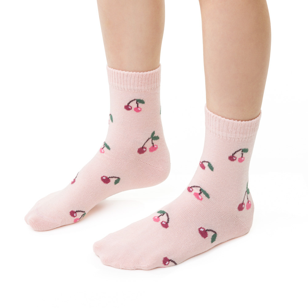 Dodaj radości do każdego kroku dzięki dziewczęcym skarpetkom z wzorem wisienek! To doskonały wybór dla małych miłośniczek kolorowych i wyjątkowych dodatków, które łączą styl z wygodą. Te skarpetki to świetny dodatek do codziennych stylizacji, który przypadnie do gustu każdej dziewczynce. Skarpetki są delikatne dla skóry i pozwalają stopom oddychać, dzięki 74% bawełny. 23% poliamidu i 2% elastanu sprawia, że skarpetki są trwałe i doskonale dopasowują się do stopy, zapewniając komfort przez cały dzień. 1% polipropylenu daje dodatkową odporność na zużycie.