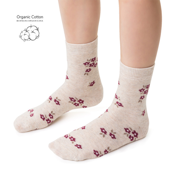 Skarpetki z bawełny organicznej w kwiatki beżowe