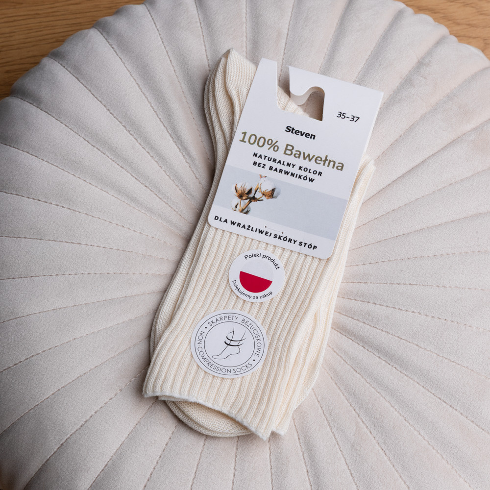 Komfort, naturalność i ochrona w jednym. Te eleganckie skarpety w prążki wykonane są w 100% z czystej, certyfikowanej bawełny (OEKO-TEX STANDARD 100) – bez dodatków sztucznych barwników i środków zapachowych. To doskonały wybór dla osób z alergiami, wrażliwą skórą czy chorobami dermatologicznymi. Skarpety są bezuciskowe, bezszwowe i chronią zarówno stopę, jak i łydkę, zapewniając maksymalny komfort przez cały dzień. Pozwalają skórze oddychać, są delikatne w dotyku. To wybór, który łączy zdrowie, wygodę i troskę o planetę.