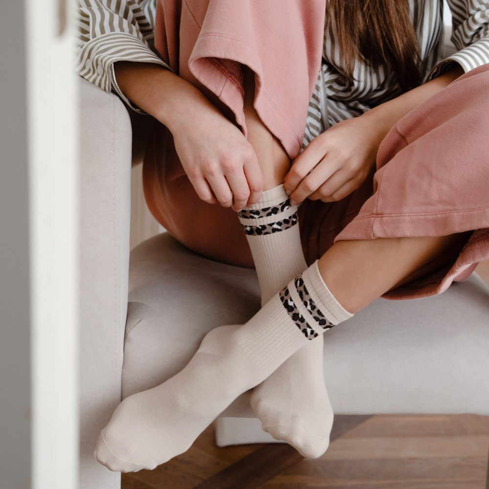 Skarpetki wzorowane beżowe z paskami w panterkę
