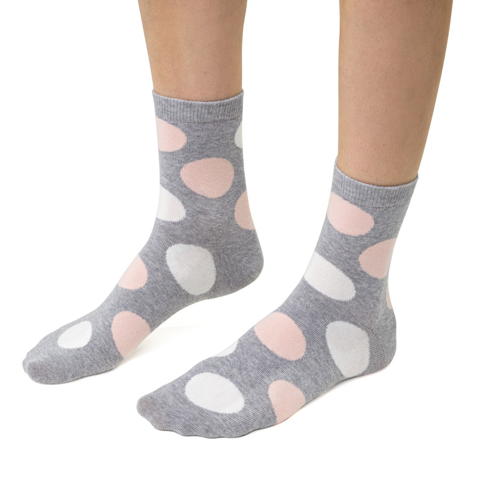 Dodaj styl i komfort do swojej garderoby dzięki naszym damskim bawełnianym skarpetkom w grochy. Wykonane z wysokiej jakości, miękkiej i oddychającej bawełny, idealnie dopasowują się do stopy, zapewniając wygodę przez cały dzień. Te stylowe skarpetki to doskonały wybór dla każdej kobiety ceniącej sobie połączenie klasycznego wzornictwa i funkcjonalności. Idealne na każdą porę roku i świetne jako dodatek do casualowych i eleganckich outfitów.