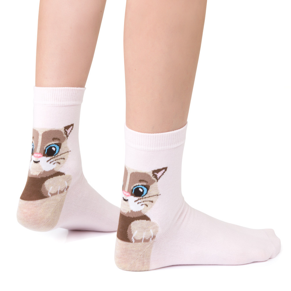 Dodaj styl i komfort do swojej garderoby dzięki naszym damskim bawełnianym skarpetkom z wzorem kota z tyłu łydki. Wykonane z wysokiej jakości, miękkiej i oddychającej bawełny, idealnie dopasowują się do stopy, zapewniając wygodę przez cały dzień. Te stylowe skarpetki to doskonały wybór dla każdej kobiety ceniącej sobie połączenie klasycznego wzornictwa i funkcjonalności. Idealne na każdą porę roku i świetne jako dodatek do casualowych i eleganckich outfitów.