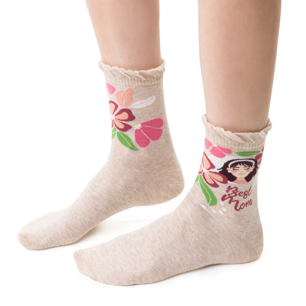 Skarpetki na Dzień Mamy melanż jasnobeżowe