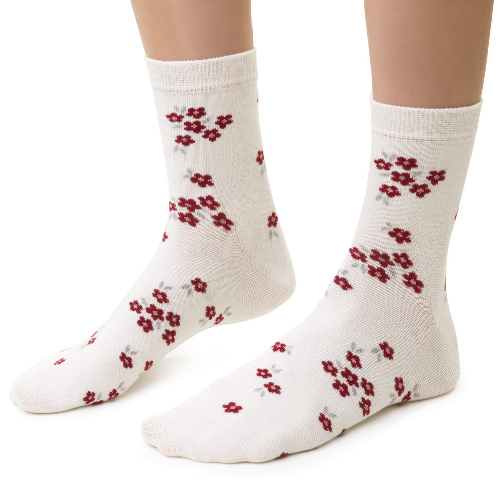 Skarpetki w kwiatki ecru