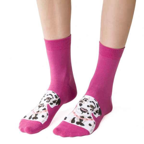 Dodaj styl i komfort do swojej garderoby dzięki naszym damskim bawełnianym skarpetkom ze wzorem dalmatyńczyka. Wykonane z wysokiej jakości, miękkiej i oddychającej bawełny, idealnie dopasowują się do stopy, zapewniając wygodę przez cały dzień. Te stylowe skarpetki to doskonały wybór dla każdej kobiety ceniącej sobie połączenie klasycznego wzornictwa i funkcjonalności. Idealne na każdą porę roku i świetne jako dodatek do casualowych i eleganckich outfitów.