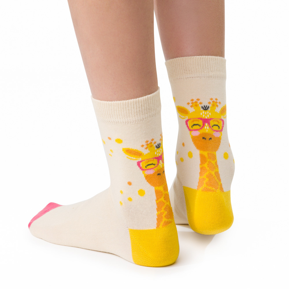 Dodaj styl i komfort do swojej garderoby dzięki naszym damskim bawełnianym skarpetkom z wzorem żyrafy z tyłu łydki. Wykonane z wysokiej jakości, miękkiej i oddychającej bawełny, idealnie dopasowują się do stopy, zapewniając wygodę przez cały dzień. Te stylowe skarpetki to doskonały wybór dla każdej kobiety ceniącej sobie połączenie klasycznego wzornictwa i funkcjonalności. Idealne na każdą porę roku i świetne jako dodatek do casualowych i eleganckich outfitów.