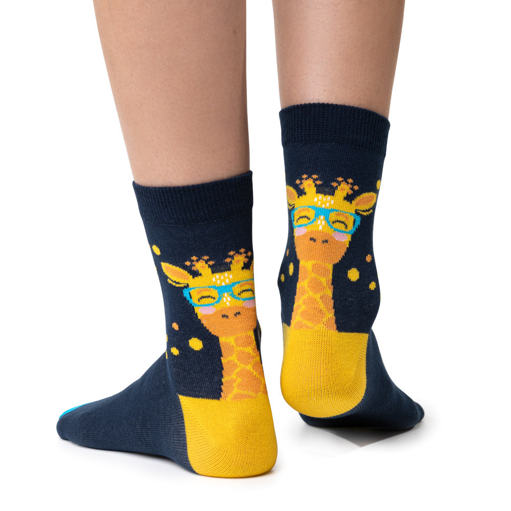Dodaj styl i komfort do swojej garderoby dzięki naszym damskim bawełnianym skarpetkom z wzorem żyrafy z tyłu łydki. Wykonane z wysokiej jakości, miękkiej i oddychającej bawełny, idealnie dopasowują się do stopy, zapewniając wygodę przez cały dzień. Te stylowe skarpetki to doskonały wybór dla każdej kobiety ceniącej sobie połączenie klasycznego wzornictwa i funkcjonalności. Idealne na każdą porę roku i świetne jako dodatek do casualowych i eleganckich outfitów.