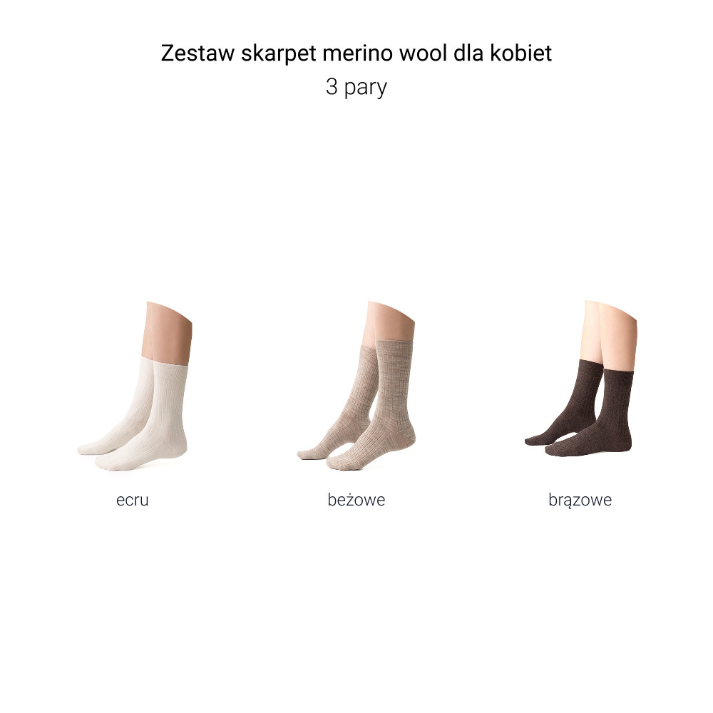 Zestaw składa się z trzech par skarpet wykonanych z wełny merynosów. Skarpety są bezuciskowe i bezszwowe. Doskonale regulują temperaturę. Idealnie dopasowane, delikatne dla skóry, zapewniają komfort nawet przy długim noszeniu. Materiał świetnie wchłania wilgoć, a także włókna wełny Merino działają bakteriobójczo.