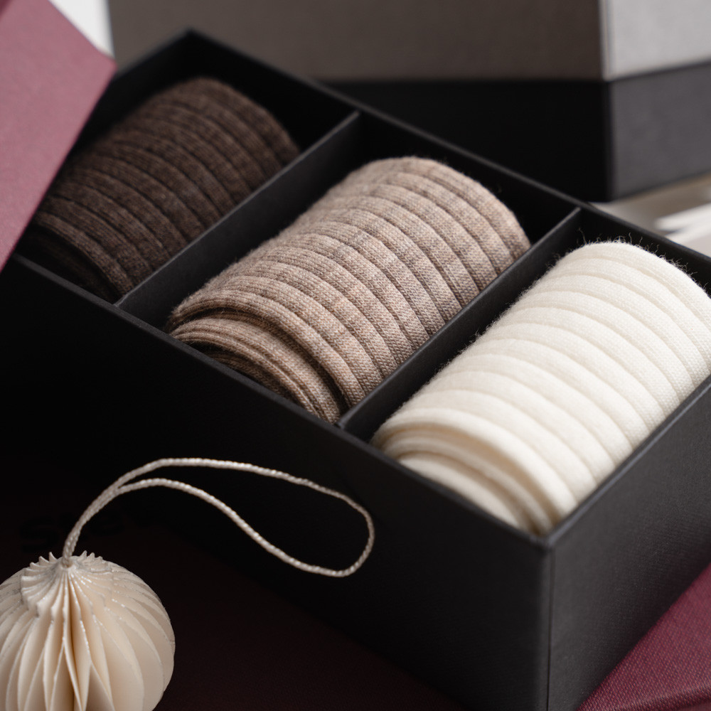 Ten elegancki zestaw skarpet to idealny pomysł na prezent. Zapakowane w stylowe pudełko prezentowe, stanowią gotowy upominek, który wyróżnia się nie tylko jakością, ale także pięknym wyglądem.