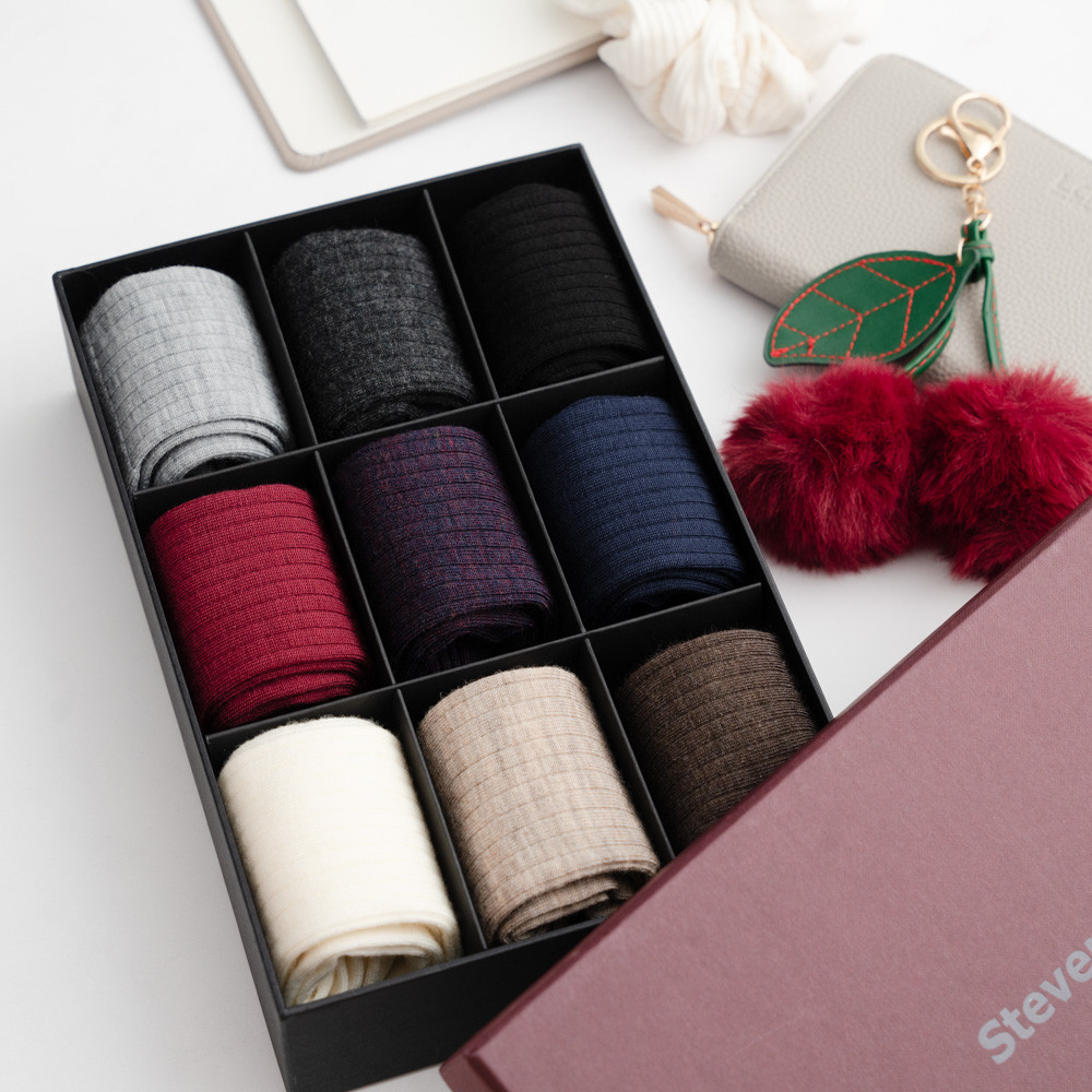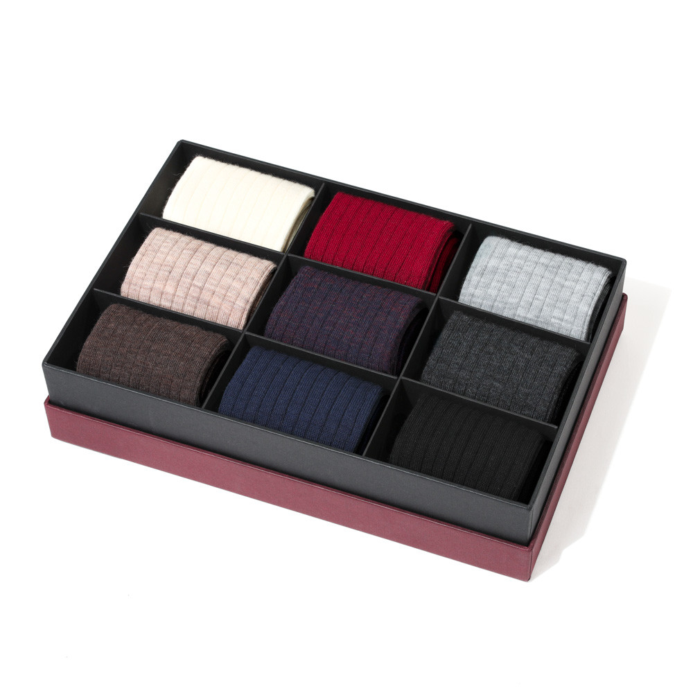 Zestaw składa się z dziewięciu par skarpet wykonanych z wełny merynosów. Skarpety są bezuciskowe i bezszwowe. Doskonale regulują temperaturę. Idealnie dopasowane, delikatne dla skóry, zapewniają komfort nawet przy długim noszeniu. Materiał świetnie wchłania wilgoć, a także włókna wełny Merino działają bakteriobójczo.