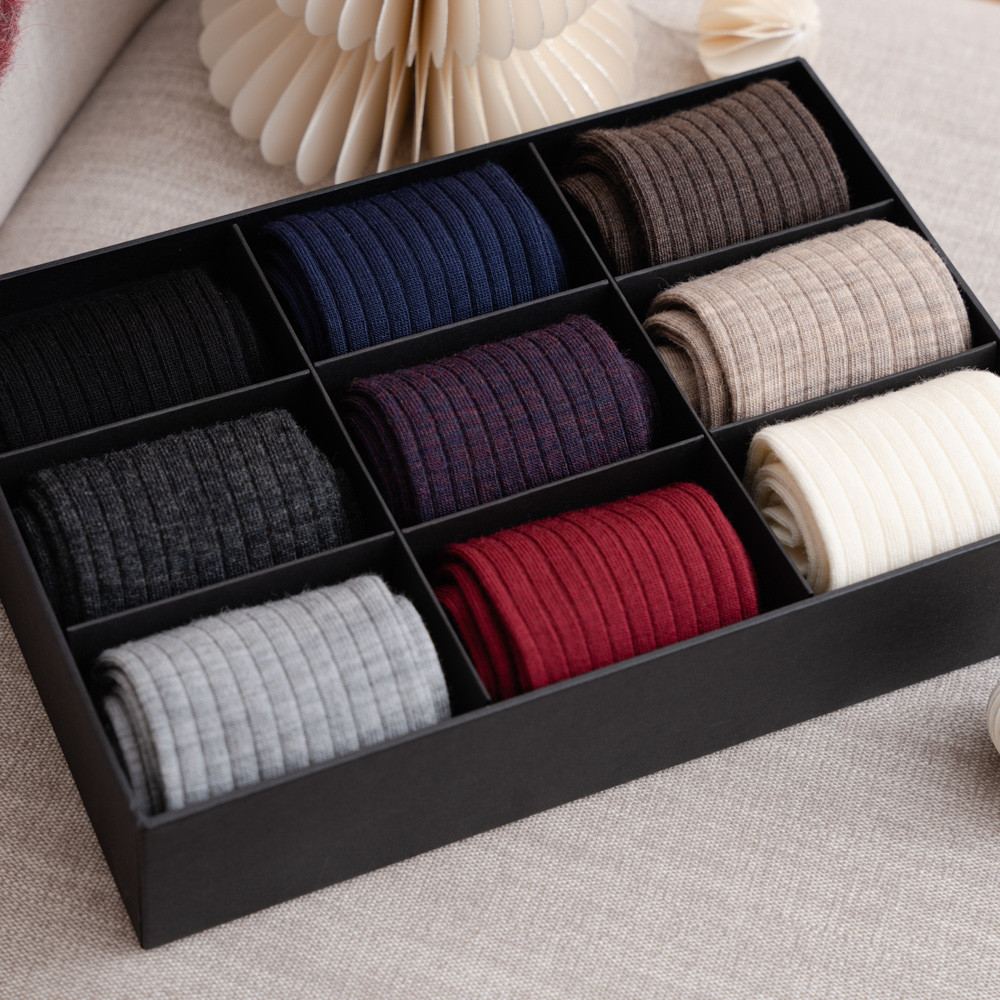 Ten elegancki zestaw skarpet to idealny pomysł na prezent. Zapakowane w stylowe pudełko prezentowe, stanowią gotowy upominek, który wyróżnia się nie tylko jakością, ale także pięknym wyglądem.