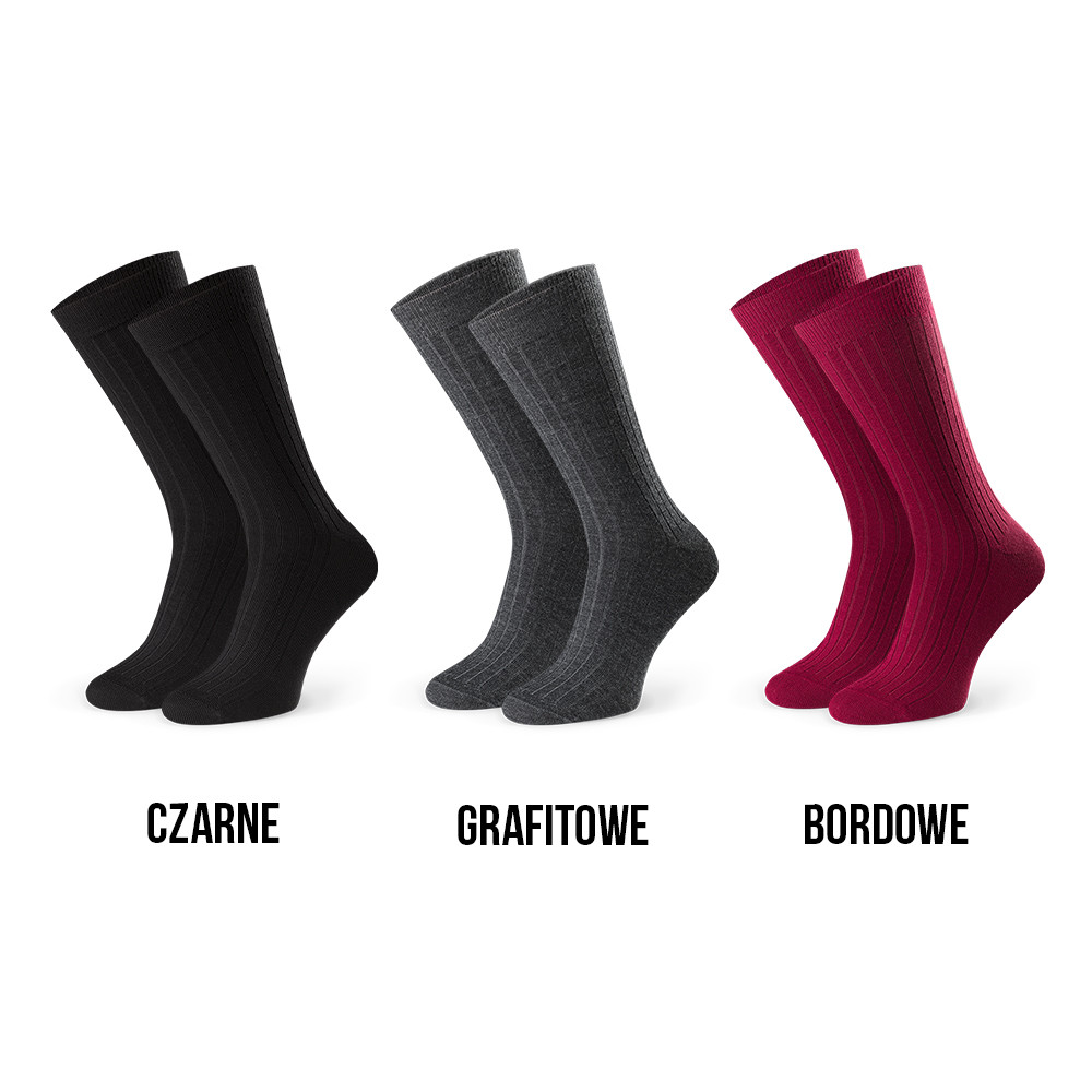 Zestaw składa się z trzech par skarpet wykonanych z wełny merynosów. Skarpety są bezuciskowe i bezszwowe. Doskonale regulują temperaturę. Idealnie dopasowane, delikatne dla skóry, zapewniają komfort nawet przy długim noszeniu. Materiał świetnie wchłania wilgoć, a także włókna wełny Merino działają bakteriobójczo.