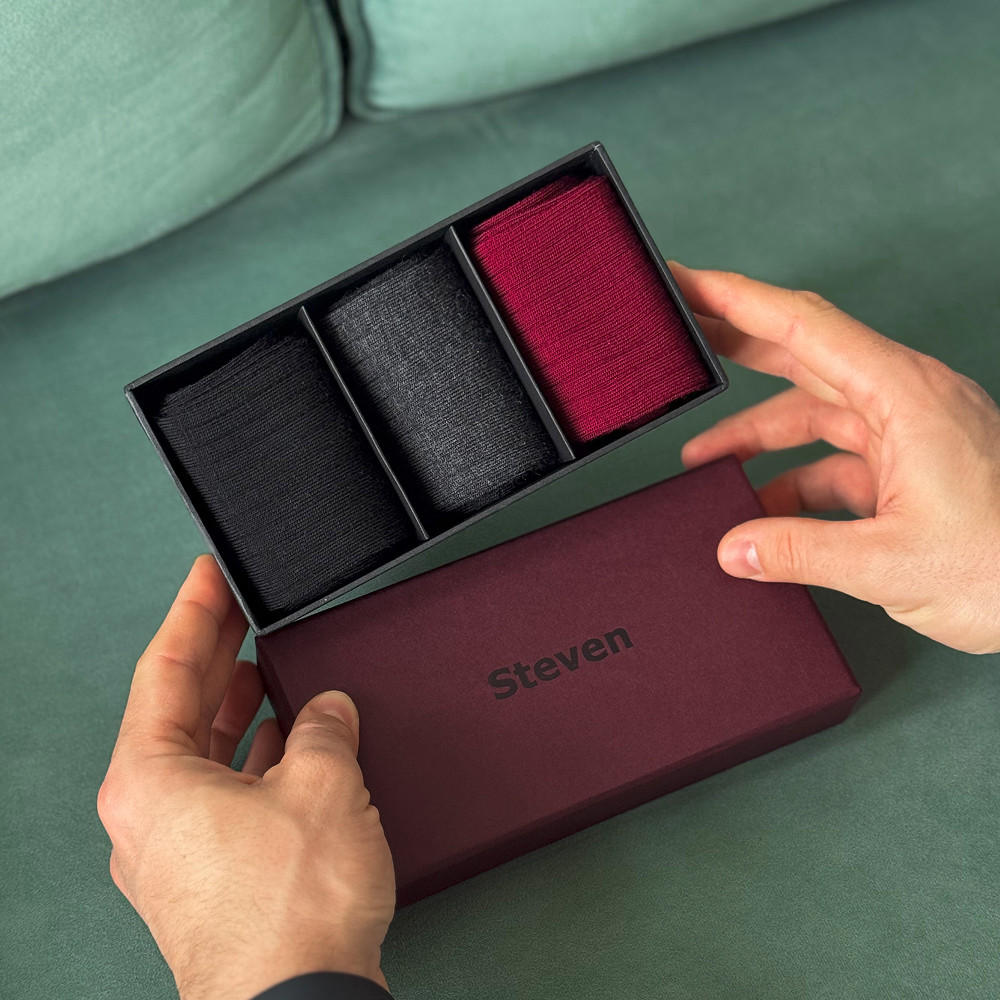 Ten elegancki zestaw skarpet to idealny pomysł na prezent. Zapakowane w stylowe pudełko prezentowe, stanowią gotowy upominek, który wyróżnia się nie tylko jakością, ale także pięknym wyglądem.