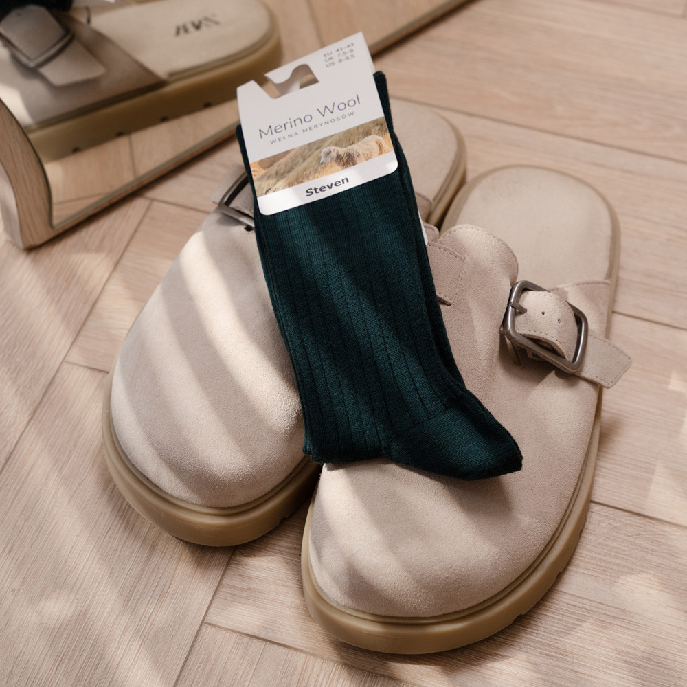 Bezszwowe skarpety wykonane z wełny merynosów (79%) gwarantują ciepło i komfort podczas noszenia. Wełna Merino zapewnia doskonałe właściwości termoizolacyjne. Materiał świetnie wchłania wilgoć, a także włókna wełny Merino działają bakteriobójczo. Skarpety idealnie dopasowują się do stopy i są delikatne dla skóry. Prążkowany materiał sprawia, że produkt nie powoduje żadnego ucisku. Konstrukcja skarpet oparta na włóknach poliamidowych (20%) daje wyjątkową trwałość i dużą wytrzymałość. Skarpety są niezwykle miękkie w dotyku.
