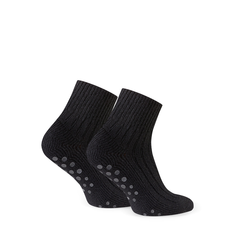 Otul stopy naturalnym ciepłem dzięki skarpetkom z miękkiej wełny jagnięcej. Bezszwowe wykończenie, delikatny ściągacz oraz prążkowany wzór sprawiają, że są niezwykle wygodne i przyjemne w noszeniu. Antypoślizgowa podeszwa zapewnia bezpieczeństwo na śliskich powierzchniach, a krój do kostki świetnie sprawdza się w codziennym użytkowaniu.