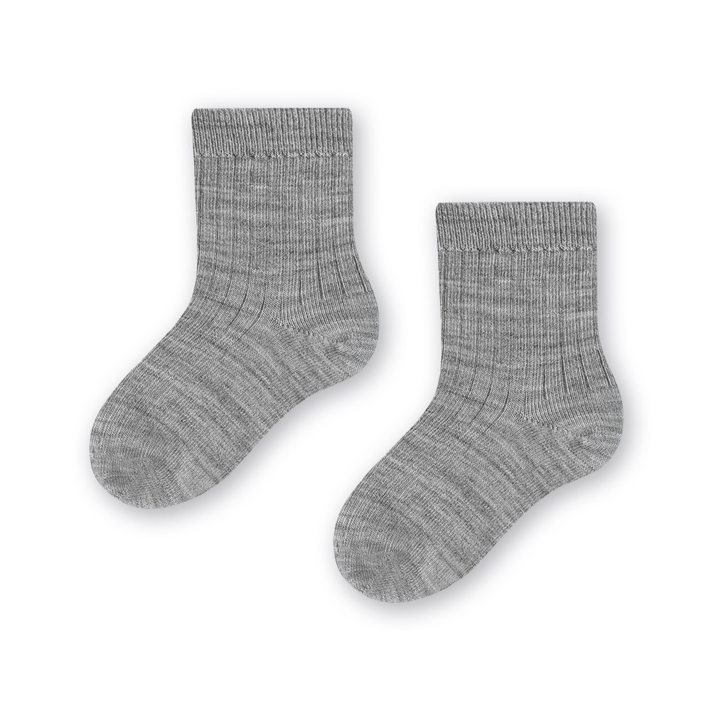 Bezszwowe skarpetki dla dzieci wykonane z wełny merynosów (79%) gwarantują ciepło i komfort podczas noszenia. Wełna Merino zapewnia doskonałe właściwości termoizolacyjne. Materiał świetnie wchłania wilgoć, a także włókna wełny Merino działają bakteriobójczo. Skarpetki idealnie dopasowują się do stopy i są delikatne dla skóry. Prążkowany materiał sprawia, że produkt nie powoduje żadnego ucisku. Konstrukcja skarpet oparta na włóknach poliamidowych (19%) daje wyjątkową trwałość i dużą wytrzymałość. Skarpetki są niezwykle miękkie w dotyku.