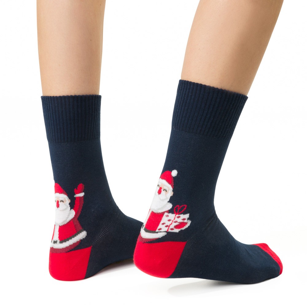 Wystarczy tylko pomyśleć o świętym Mikołaju, którego prosto z Laponii przywiózł swoimi saniami renifer Rudolf i z miejsca czuje się tę wyjątkową atmosferę! Uwielbiamy gwiazdkowe klimaty i jak co roku przygotowaliśmy z tej okazji specjalną kolekcję. Świąteczne skarpety dla kobiet dostępne są w kilku wzorach i różnych wariantach kolorystycznych. Białego puchu, bez którego Boże Narodzenie zdecydowanie traci na uroku niestety nie da się wcześniej zamówić, ale udane świąteczne prezenty z naszego sklepu owszem!