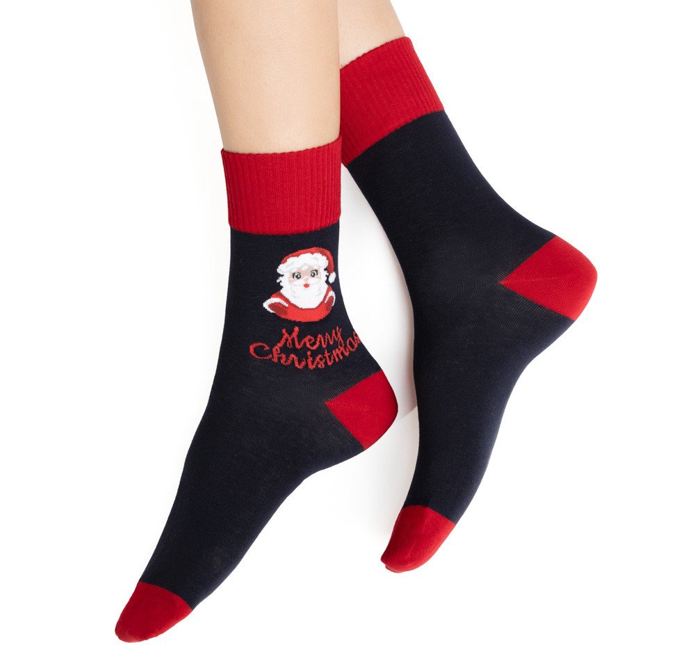 Wprowadź świąteczny nastrój do swojej garderoby dzięki naszym uroczych skarpetkom damskim! Te miękkie i wygodne skarpety zdobi kolorowy Mikołaj wraz z napisem „Merry Christmas”, który natychmiast przywołuje magię Świąt. Idealne do codziennego noszenia w domu, jak i jako świąteczny dodatek do stylizacji.