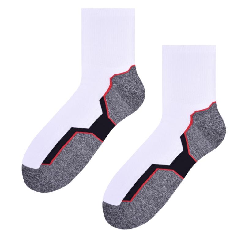Dynamiczne linie i żywe kolory znalazły się na naszych sportowych modelach męskich skarpet. Wykonane z najwyższej jakości bawełnianej przędzy, która zadba o odpowiednią wentylację stóp. Elastyczny ściągacz idealnie dopasowuje się do kształtu łydki i daje komfort, nawet przy wzmożonym wysiłku. W skarpetach został zastosowany delikatny, nieuwierający, płaski szew. Idealne dla miłośników trekkingu, jazdy na rowerze, biegania lub sportów drużynowych.