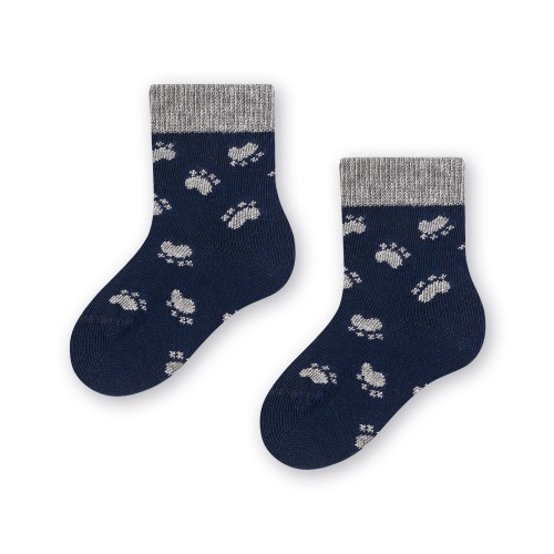 Jak sądzicie ten subtelny wzór to chmurki, serduszka czy może łapki jakiegoś zwierzaczka? Zostawimy to w gestii waszej wyobraźni i kreatywnego myślenia skupiając się na tym, co w skarpetkach dla niemowląt naprawdę istotne. Doskonała bawełna oraz technologia bezszwowych łączeń zapewnią delikatność w kontakcie z wrażliwą skóra maleństwa i gwarantują maksymalny komfort dla jego stópek.