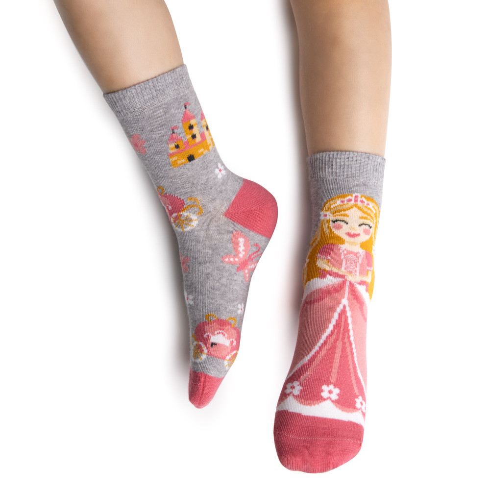 Dodaj radości do każdego kroku dzięki dziewczęcym skarpetkom z uroczym wzorem w księżniczki! To doskonały wybór dla małych miłośniczek kolorowych i wyjątkowych dodatków, które łączą styl z wygodą. Te skarpetki to świetny dodatek do codziennych stylizacji, który przypadnie do gustu każdej dziewczynce. Skarpetki są delikatne dla skóry i pozwalają stopom oddychać, dzięki bawełnie. Poliamid i elastan sprawia, że skarpetki są trwałe i doskonale dopasowują się do stopy, zapewniając komfort przez cały dzień. Polipropylenu daje dodatkową odporność na zużycie.