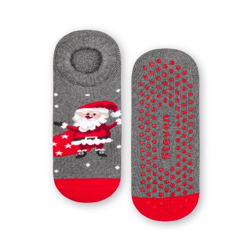 Dziecięce stopki frotte z antypoślizgowym wzorem pod stopami to najlepszy wybór zarówno podczas nauki chodzenia, jak i przy podejmowaniu przez dziecko sportowych wyzwań. Wykonane z grubej, ciepłej frotty z powodzeniem zastąpią także domowe kapcie. Umieściliśmy na nich wzory świąteczne więc mogą być jednocześnie idealnym świątecznym prezentem.