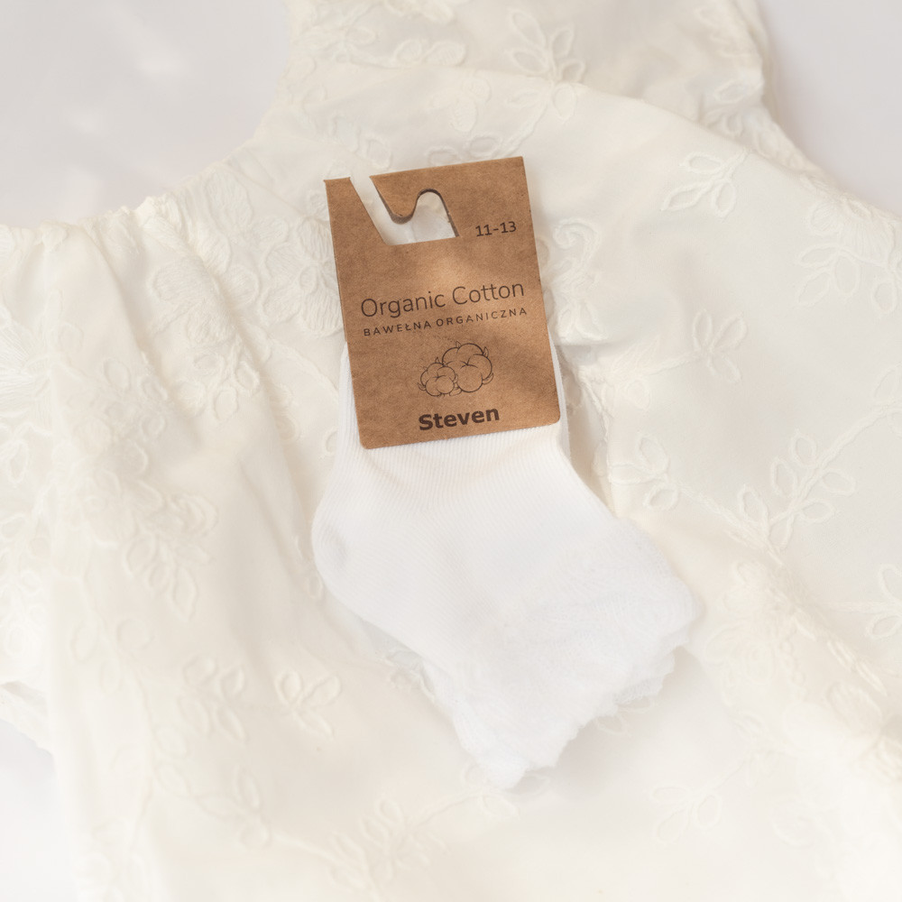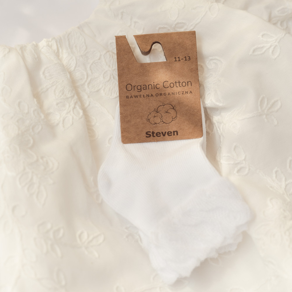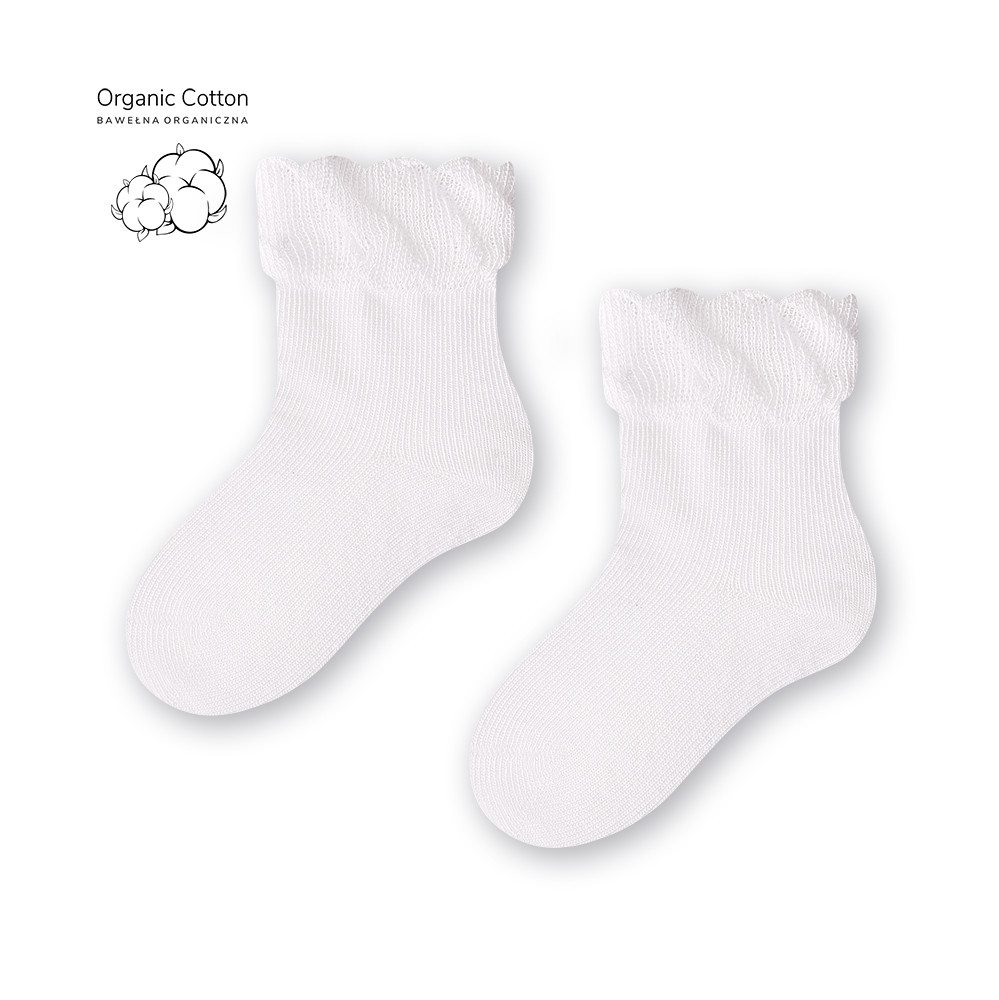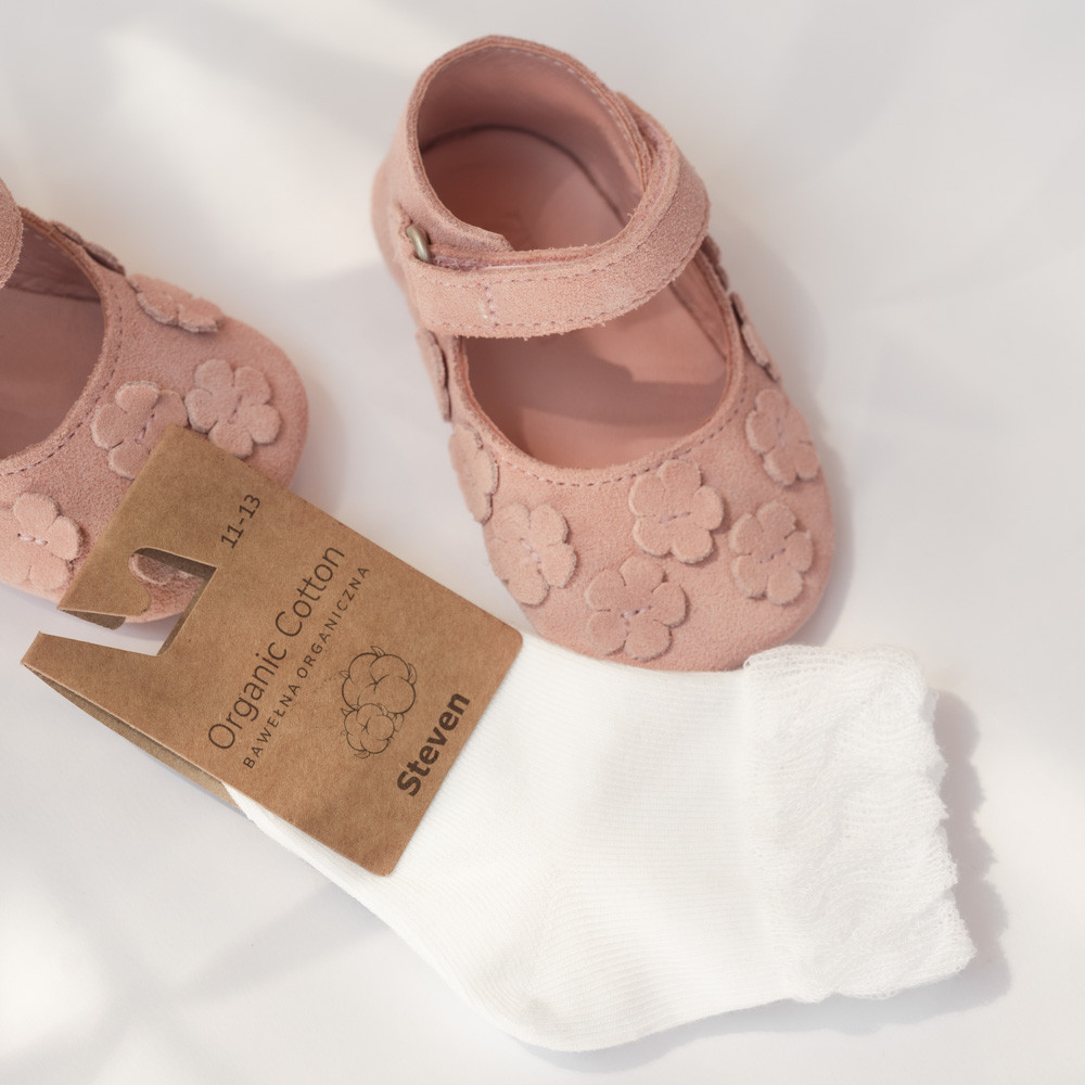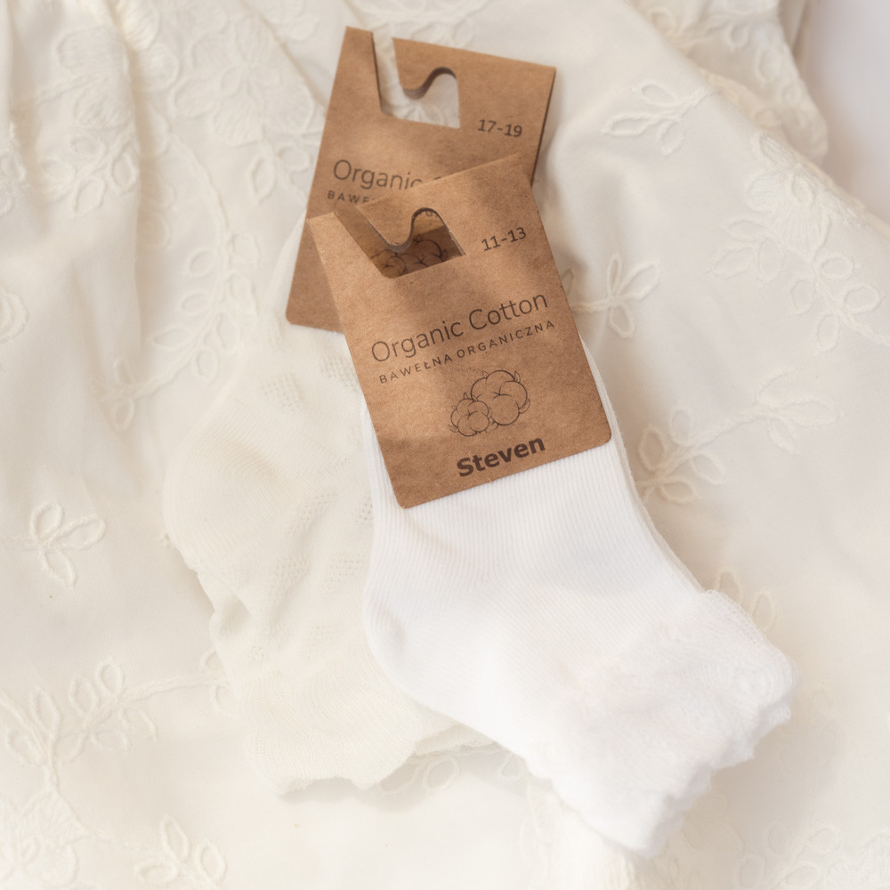 Skarpetki z bawełny organicznej z delikatną falbanką w ściągaczu łączą wyjątkowy komfort z naturalnymi właściwościami. Bawełna organiczna jest delikatna dla skóry dziecka, hipoalergiczna i wolna od szkodliwych substancji. Skarpetki zapewniają doskonałą cyrkulację powietrza, zapobiegając przegrzewaniu się stóp. Komfort noszenia. Dostępne w kilku kolorach.