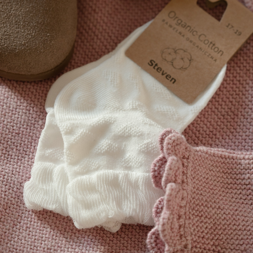 Skarpetki z bawełny organicznej z falbanką złamana biel
