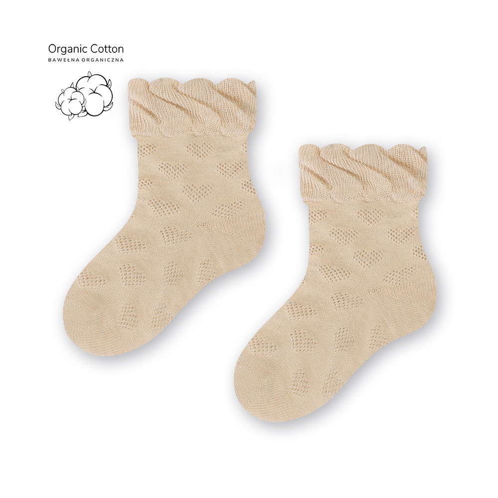 Skarpetki z bawełny organicznej z falbanką melanż jasnobeżowe