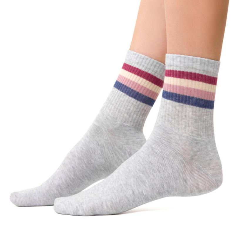 Sportowe skarpety z delikatnej bawełny (69%) gwarantują wygodę przez cały aktywny dzień. Idealne dla osób ceniących sobie praktyczność oraz komfort. Design dopasowany do sportowych stylizacji. Konstrukcja produktu oparta na włóknach poliamidowych (27%) daje wyjątkową trwałość, natomiast elastan (4%) gwarantuje elastyczność i idealne przyleganie do stopy.