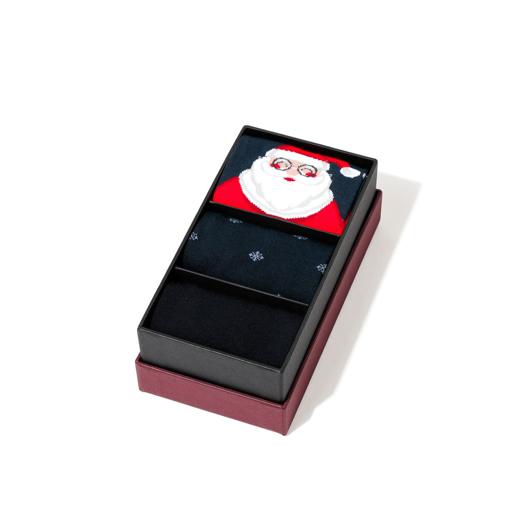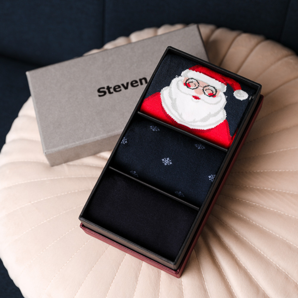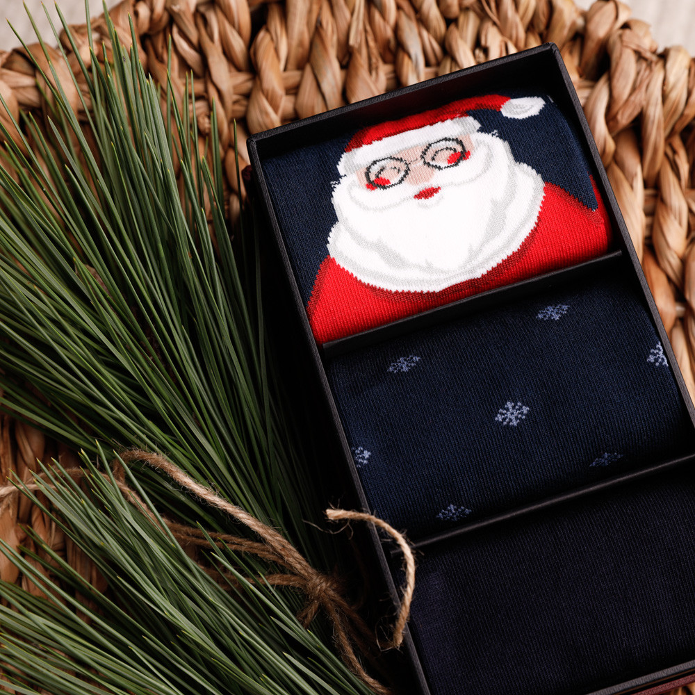 Zestaw składa się z trzech par skarpet wykonanych z certyfikowanej bawełny (certyfikat OEKO-TEX Standard 100). Skarpety są bezszowe. Komfort noszenia zapewniają także delikatne ściągacze. Ten elegancki zestaw skarpet to idealny pomysł na prezent. Zapakowane w stylowe pudełko, stanowią gotowy świąteczny upominek, który wyróżnia się nie tylko jakością, ale także pięknym wyglądem.