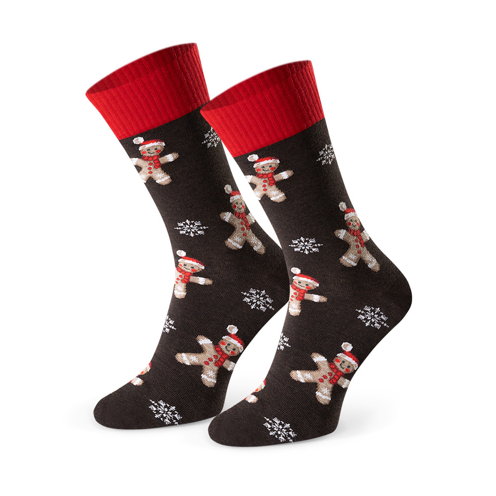 Męskie bawełniane skarpetki świąteczne w kolorze melanżu brązu z wzorem w ciasteczka. Poczuj magię świąt od stóp do głów! Te miękkie, bawełniane skarpetki w ciepłym odcieniu brązu otulą Twoje stopy komfortem, a wzór w słodkie ciasteczka wprowadzi świąteczny nastrój — idealne do kubka kakao i wieczoru przy choince. Doskonały pomysł na prezent dla każdego, kto kocha klimat Świąt!