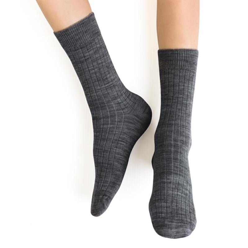 Skarpetki z wełny merynosów bezuciskowe w prążki ciemoszare
