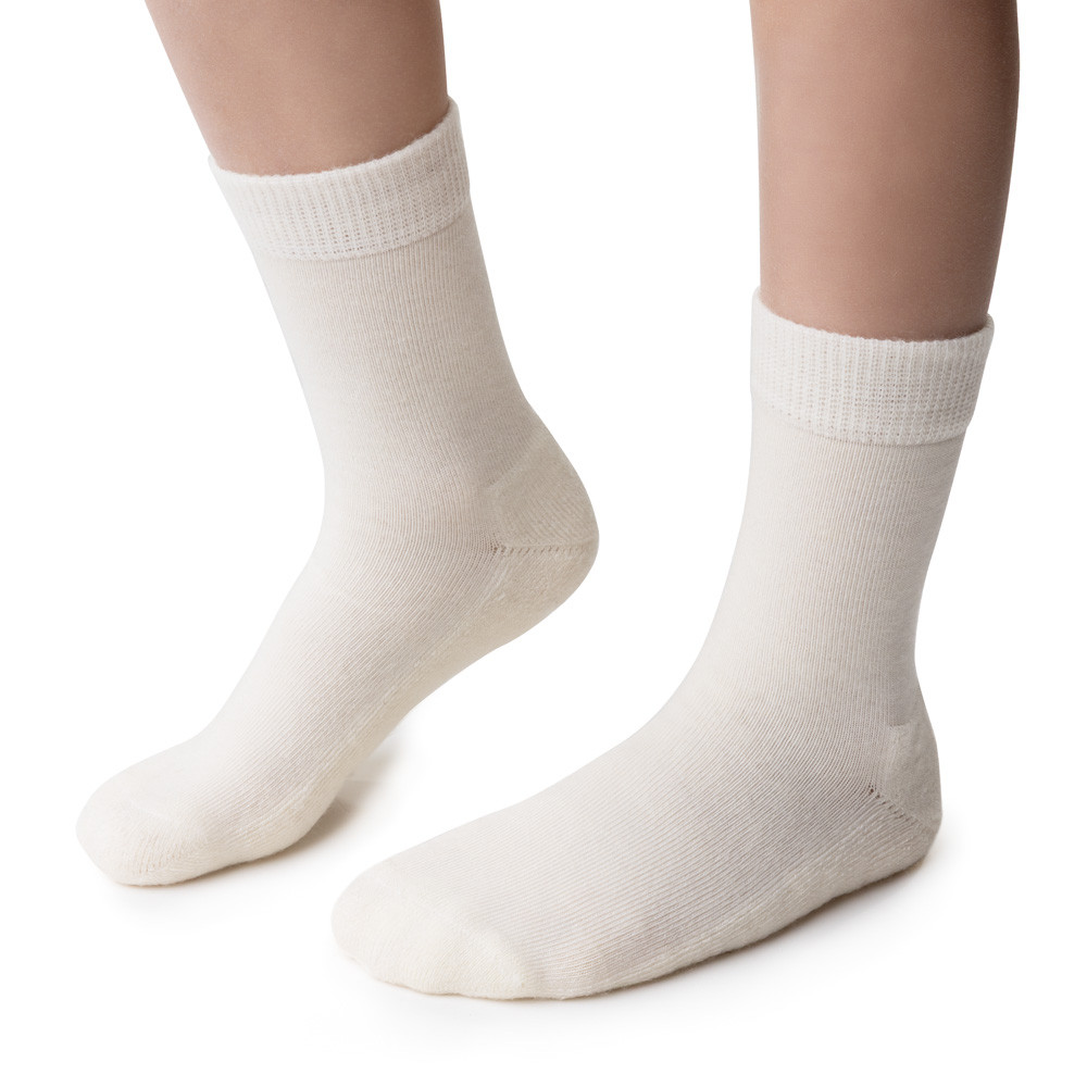 Ciepłe skarpetki dziecięce półfrotte wykonane z miękkiej i naturalnej wełny merynosów (83%) to niezastąpiony element garderoby na jesień i zimę. Dzięki właściwościom termoaktywnym skutecznie ogrzewają stopy malucha, jednocześnie zapewniając świetną wentylację i odprowadzanie wilgoci. Naturalne włókna tworzą środowisko nieprzyjazne dla bakterii – co jest szczególnie ważne przy aktywności dzieci. Bezszwowe łączenie na palcach i frotta pod stopą gwarantują maksymalny komfort, nawet podczas długiego noszenia. Klasyczny krój pasuje zarówno do codziennych, jak i wyjściowych stylizacji. Dzięki dodatkowi włókien poliamidowych i elastanu skarpetki są trwałe, elastyczne i idealnie dopasowują się do dziecięcej stopy, nie zsuwając się i nie uciskając. Idealne do przedszkola, na spacer czy zimowe zabawy na dworze!