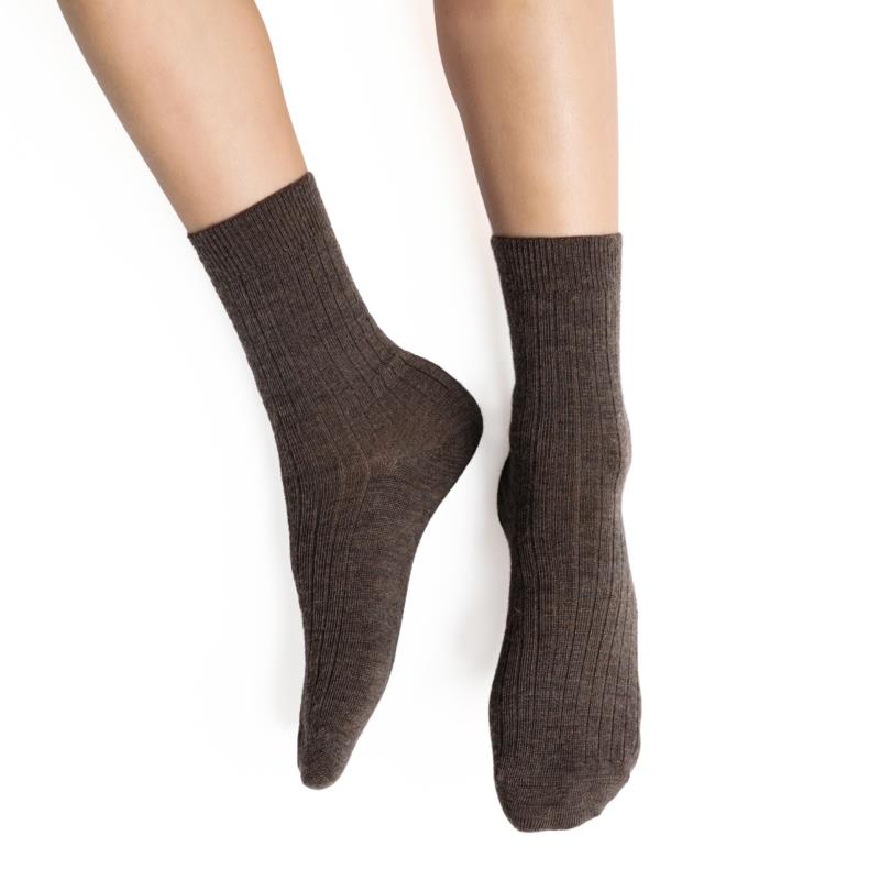 Skarpetki z wełny merynosów bezuciskowe w prążki melanż brąz
