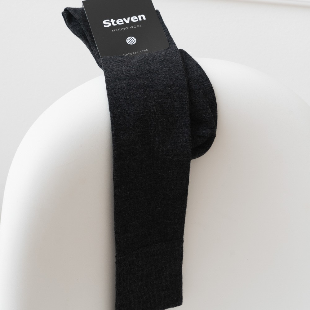 Podkolanówki z wełny merynosów grafitowe