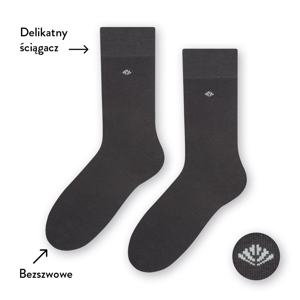 Dodaj szyku swojej stylizacji dzięki męskim skarpetom garniturowym! Gładki, jednolity design z delikatnym znaczkiem na kostce to idealne połączenie klasyki i nowoczesnego akcentu. Doskonałe do formalnych i biznesowych stylizacji, a także na specjalne okazje.