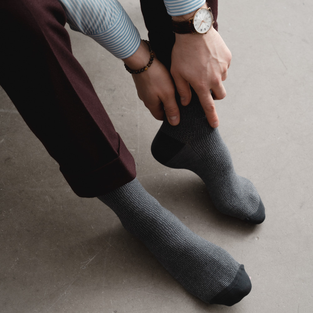 Męskie skarpety żakardowe z bawełny to doskonały wybór dla panów ceniących elegancję, komfort i najwyższą jakość wykonania. Stworzone z wysokogatunkowej bawełny, zapewniają przewiewność i wygodę. Żakardowy splot nadaje im subtelny, luksusowy charakter, podkreślając klasyczny styl i dbałość o detale. Te eleganckie skarpety to must-have w garderobie każdego mężczyzny, który dba o styl i komfort. Świetnie komponują się z klasycznym garniturem, smokingiem czy zestawem smart casual.