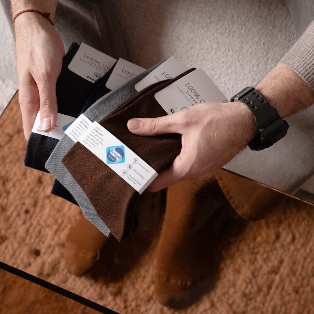 Zapewnij swoim stopom najwyższy komfort i świeżość! W naszym sklepie znajdziesz gładkie męskie skarpety wykonane w 100% z najwyższej jakości bawełny, wzbogaconej o apreturę Sanitized®. To specjalna technologia, która chroni przed bakteriami, grzybami i nieprzyjemnymi zapachami, zapewniając długotrwałą higienę i uczucie świeżości przez cały dzień. Nasze skarpety to doskonały wybór dla mężczyzn ceniących naturalne materiały i nowoczesne rozwiązania. Miękka, oddychająca bawełna gwarantuje wygodę, a specjalne wykończenie Sanitized® sprawia, że są idealne do intensywnego trybu życia – do pracy, na co dzień i na specjalne okazje. Postaw na czystość, komfort i naturalną jakość. Wybierz skarpety z ochroną Sanitized®!