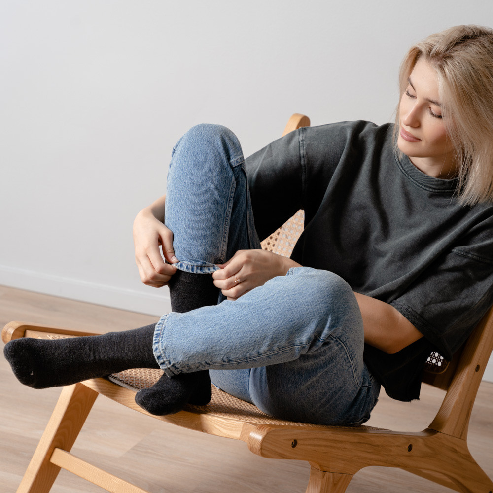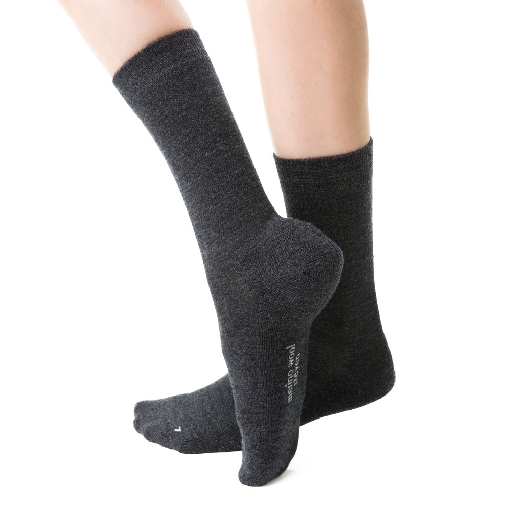 Skarpetki półfrotte wykonane z wełny merynosów (80%) to produkt idealny na sezon jesienno-zimowy. Utrzymują nieprzyjemne dla bakterii środowisko. Dobrze odprowadzają wilgoć. Klasyczny model pasuje do codziennych stylizacji, a komfort noszenia zapewnia bezszwowe łączenie oraz frotta pod stopą. Konstrukcja produktu oparta na włóknach poliamidowych (17%) daje wyjątkową trwałość, natomiast elastan (2%) gwarantuje elastyczność i idealne przyleganie do stopy.