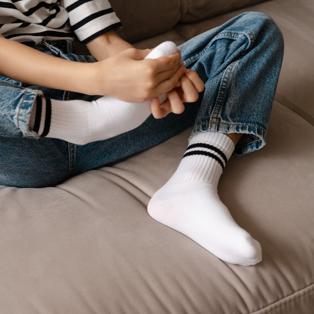 Aktywność fizyczna jest bardzo ważna w rozwoju dzieci, które szczególnie uwielbiają gry zespołowe w piłkę nożną, siatkową, koszykówkę. Delikatna bawełna zapewni odpowiednią wentylację, dzięki czemu stopy dziecka nie będą się pocić, a długość skarpetki będzie skuteczną ochroną przed otarciami.