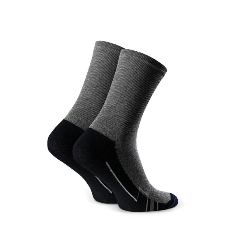 Dynamiczne linie i żywe kolory znalazły się na naszych sportowych modelach męskich skarpet. Wykonane z najwyższej jakości bawełnianej przędzy, która zadba o odpowiednią wentylację stóp. Elastyczny ściągacz idealnie dopasowuje się do kształtu łydki i daje komfort, nawet przy wzmożonym wysiłku. W skarpetach został zastosowany delikatny, nieuwierający, płaski szew. Idealne dla miłośników trekkingu, jazdy na rowerze, biegania lub sportów drużynowych.