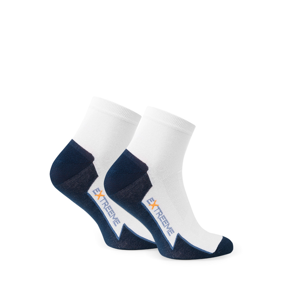 Skarpety sportowe, które idealnie odnajdą się w garderobie mężczyzn lubiących rzeczy praktyczne. Ich długość (nieco za kostkę), uniwersalna kolorystyka i rozmieszczenie wzoru sprawiają, że to propozycja idealna do codziennego użytku. Te uniwersalne krótkie skarpety za kostkę, w stylu sportowym są idealne do każdej fizycznej aktywności. Polecane zarówno do tradycyjnego obuwia sportowego, jak również niższego, o lżejszym charakterze. Dynamiczne wzory i żywe akcenty kolorystyczne. Stopki idealnie przylegają do stopy, a cienka, przewiewna bawełna sprawdzi się podczas sportowych wyzwań.