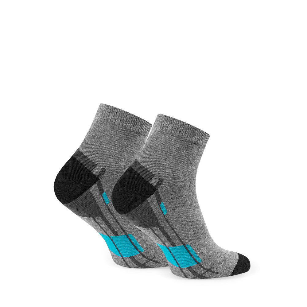 Skarpety sportowe, które idealnie odnajdą się w garderobie mężczyzn lubiących rzeczy praktyczne. Ich długość (nieco za kostkę), uniwersalna kolorystyka i rozmieszczenie wzoru sprawiają, że to propozycja idealna do codziennego użytku. Te uniwersalne krótkie skarpety za kostkę, w stylu sportowym są idealne do każdej fizycznej aktywności. Polecane zarówno do tradycyjnego obuwia sportowego, jak również niższego, o lżejszym charakterze. Dynamiczne wzory i żywe akcenty kolorystyczne. Stopki idealnie przylegają do stopy, a cienka, przewiewna bawełna sprawdzi się podczas sportowych wyzwań.