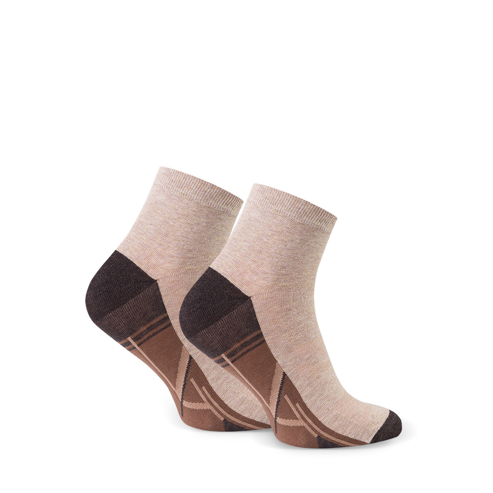 Skarpety sportowe, które idealnie odnajdą się w garderobie mężczyzn lubiących rzeczy praktyczne. Ich długość (nieco za kostkę), uniwersalna kolorystyka i rozmieszczenie wzoru sprawiają, że to propozycja idealna do codziennego użytku. Te uniwersalne krótkie skarpety za kostkę, w stylu sportowym są idealne do każdej fizycznej aktywności. Polecane zarówno do tradycyjnego obuwia sportowego, jak również niższego, o lżejszym charakterze. Dynamiczne wzory i żywe akcenty kolorystyczne. Stopki idealnie przylegają do stopy, a cienka, przewiewna bawełna sprawdzi się podczas sportowych wyzwań.