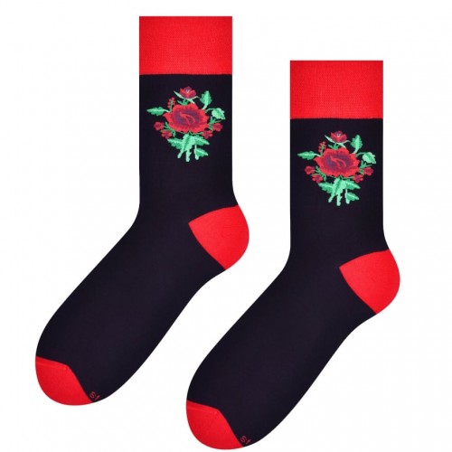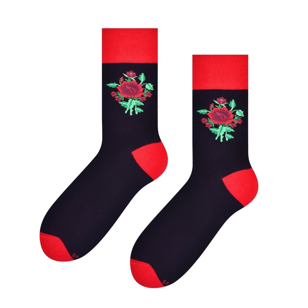 Wyjątkowe i z charakterem – nasze męskie bawełniane skarpety inspirowane folkiem łowickim to połączenie klasycznej wygody z subtelnym, tradycyjnym akcentem. Umieszczona przy ściągaczu czerwona łowicka róża dodaje im oryginalności, nawiązując do piękna polskiej sztuki ludowej. Wykonane z miękkiej, oddychającej bawełny, świetnie sprawdzą się na co dzień – w pracy, na spacerze czy w casualowych stylizacjach. Drobny akcent, który robi różnicę – bo męski styl też może mieć ludową duszę.