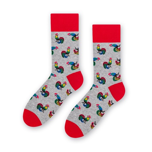 Wyraź swoją osobowość i sięgnij po styl z folkowym charakterem! Nasze męskie bawełniane skarpety z motywem łowickich kogutów to odważne i pełne koloru połączenie tradycji z nowoczesnym stylem. Inspirowane klasycznymi wzorami z wycinanek łowickich, stanowią oryginalny akcent w każdej stylizacji – od codziennej po bardziej elegancką. Wykonane z miękkiej, przewiewnej bawełny, zapewniają komfort przez cały dzień i przyciągają uwagę niebanalnym wzorem. Folk w męskim wydaniu – bo klasyka nigdy nie wychodzi z mody.