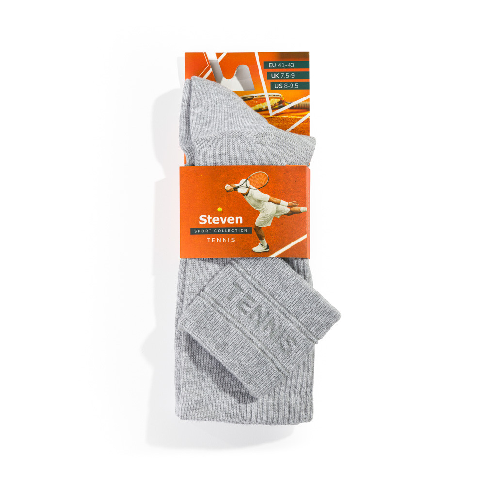 Skarpety do tenisa to produkt, który został zaprojektowany z myślą o wymagających treningach. Polecany dla osób początkujących, jak i zaawansowanych graczy. Skarpety wyprodukowano z materiału DRYTEX® COMFORT (80%) oraz lycry z jonami srebra (14%) z domieszką poliamidu (3%) i elastanu (3%). Skarpety skutecznie odprowadzają wilgoć, pozostawiając uczucie suchości i świeżości. Zaprojektowany model umożliwia swobodny przepływ powietrza, zapobiegając przegrzewaniu się stóp. Materiał z jonami srebra wykazuje działanie antybakteryjne i antyzapachowe. Skarpety są bezszwowe, dzięki czemu zmniejsza się ryzyko otarć. Ściągacz w śródstopiu stabilizuję skarpetę i zapobiega jej zsuwaniu podczas aktywności fizycznej. Na szczególną uwagę zasługuje ściągacz na wysokości łydki, którego anatomicznie dopasowuje się do nogi i nie powoduje nadmiernego ucisku. Skarpety wykonane z DRYTEX® COMFORT są bardziej trwałe i odporne na ścieranie niż tradycyjne skarpety bawełniane. W zestawie opaska frotte na nadgarstek, która zapobiega dostawaniu się potu na dłonie, co poprawia chwyt rakiety i zapobiega jej wyślizgiwaniu. Dodatkowo opaska minimalnie amortyzuje i stabilizuje nadgarstek podczas dynamicznych ruchów.